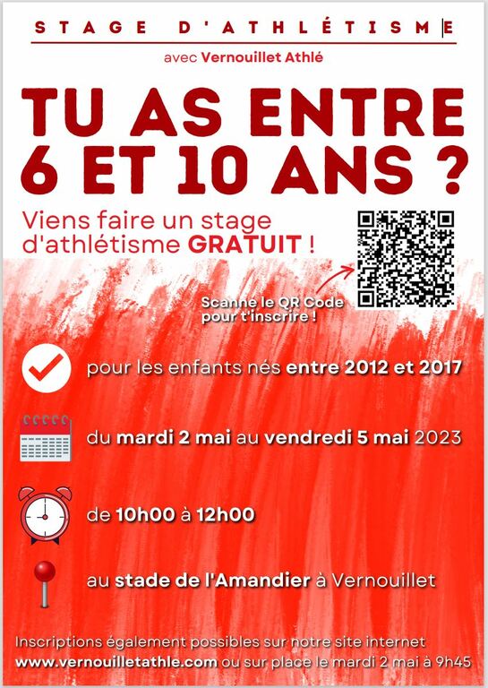 Stage de Printemps 02/05 au 5/05 gratuit et ouvert à tous
